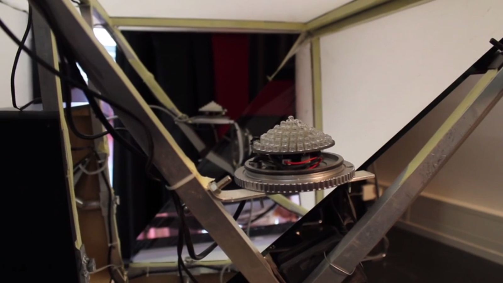 The device is made out of a steel frame with two mirrors and a beamer that beams its light via the mirrors on the surface area. An infrared camera watches the surface also, for infrared light via the mirrors. Images then get send to the computer inside the device. The computer the processes the images and interprets them to produce sound and visuals.