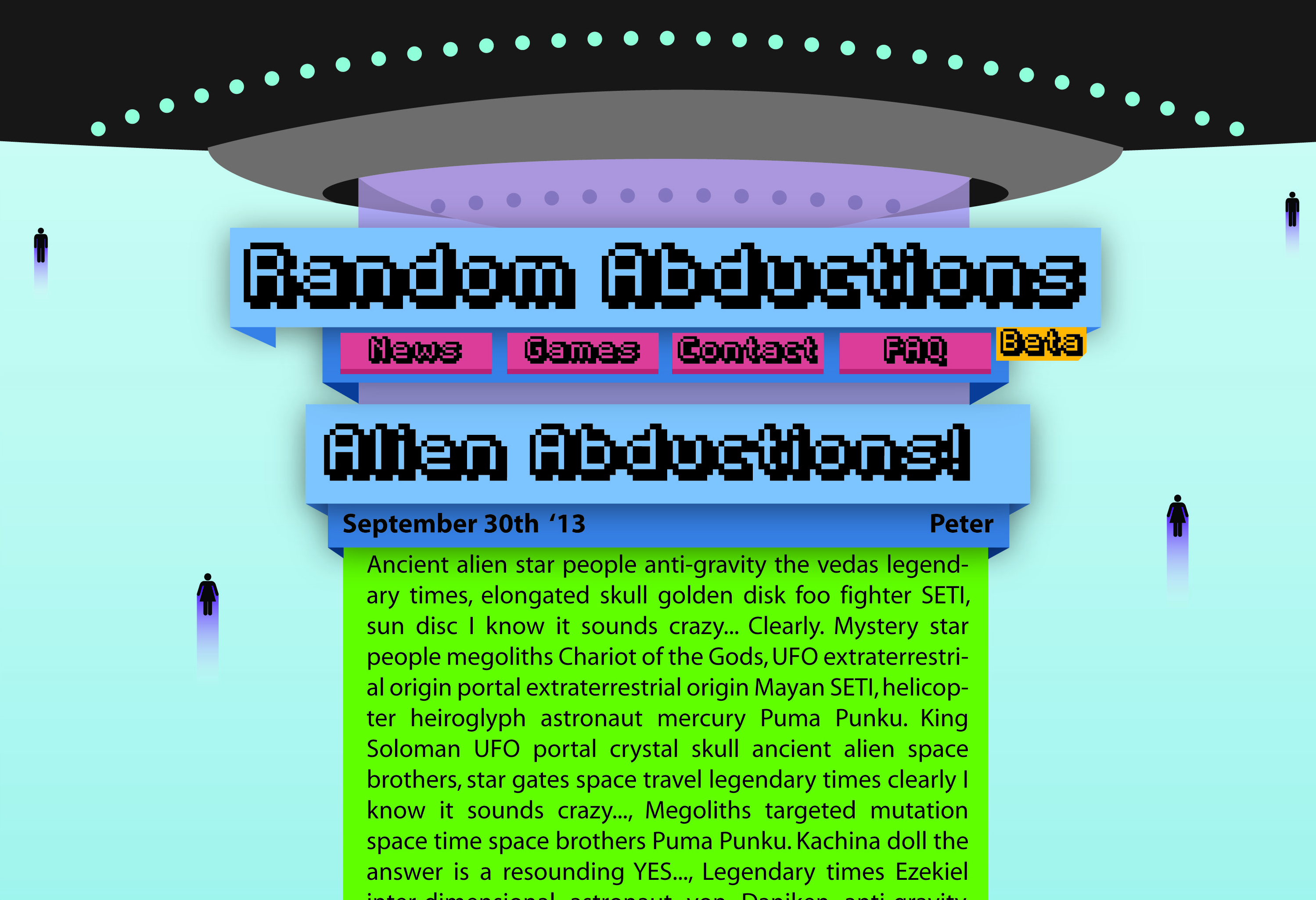 Random Abductions was a company which Siewart van Wingerden and I set up to create independent video games with and develop video game related technologies. It was a practice in entrepreneurial development for us both.